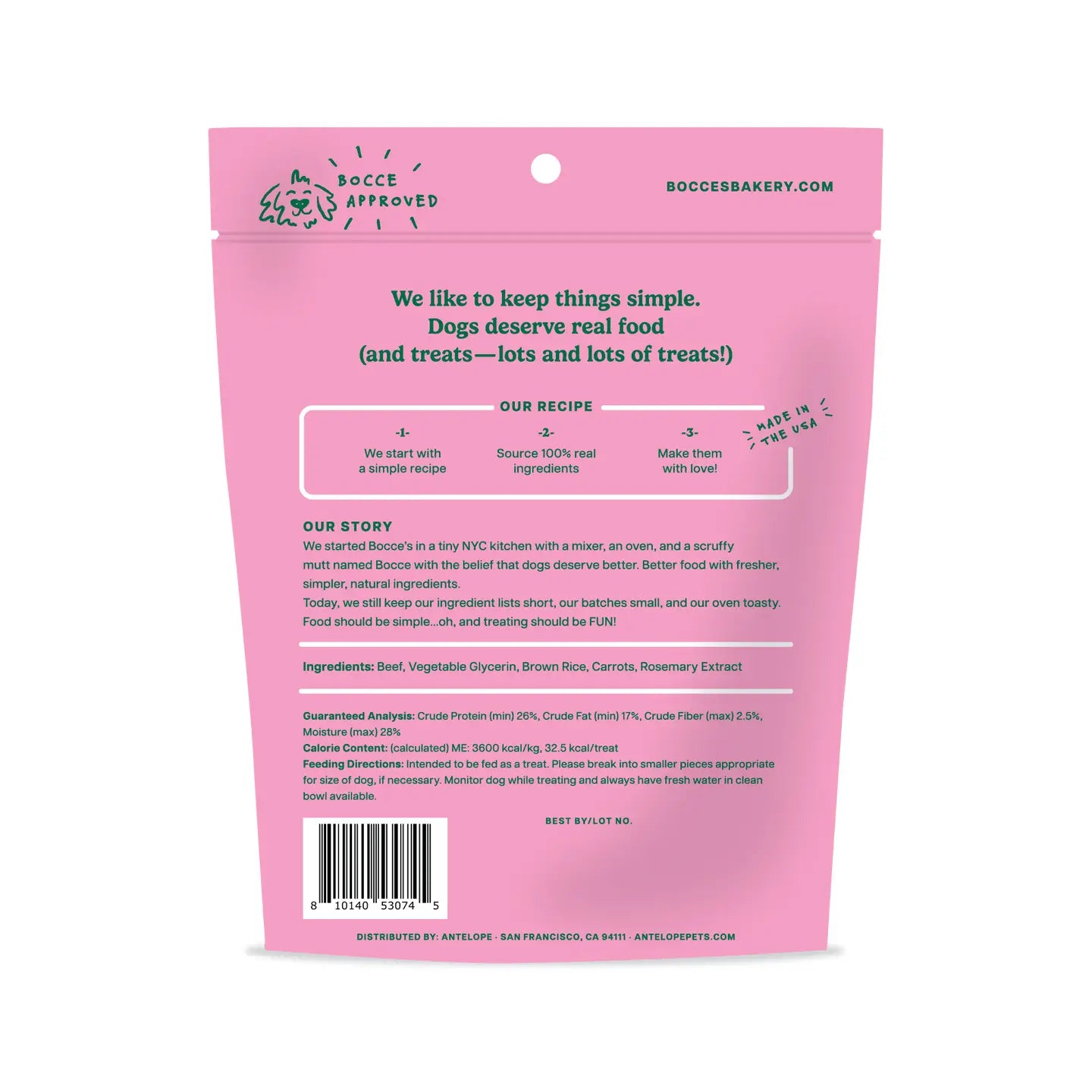 Ingredients: Beef, vegetable glycerin, brown rice, carrots and rosemary extract